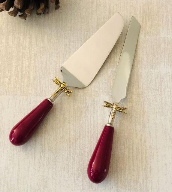 Latest Design Eco-Friendly Handmade Stainless Steel Cake Server Set Knife Gold Plated Personalized Birthday Wedding Party