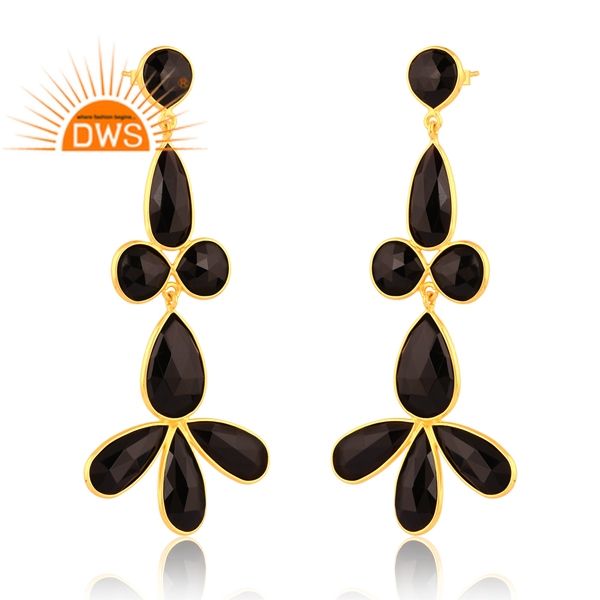 Latest Design Sterling Silver 18K Gold Plated Natural Black Onyx Gemstone Dangle Earring Demi Fine Jewelry Manufacturer