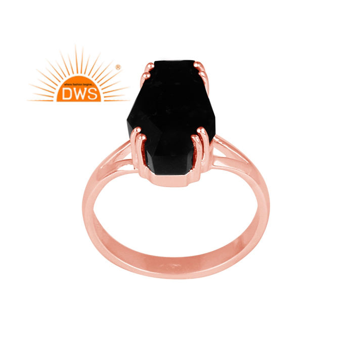 Latest Design Sterling Silver Rose Gold Plated Black Onyx Gemstone Coffin Design Split Band Ring Custom Jewelry Manufacturer