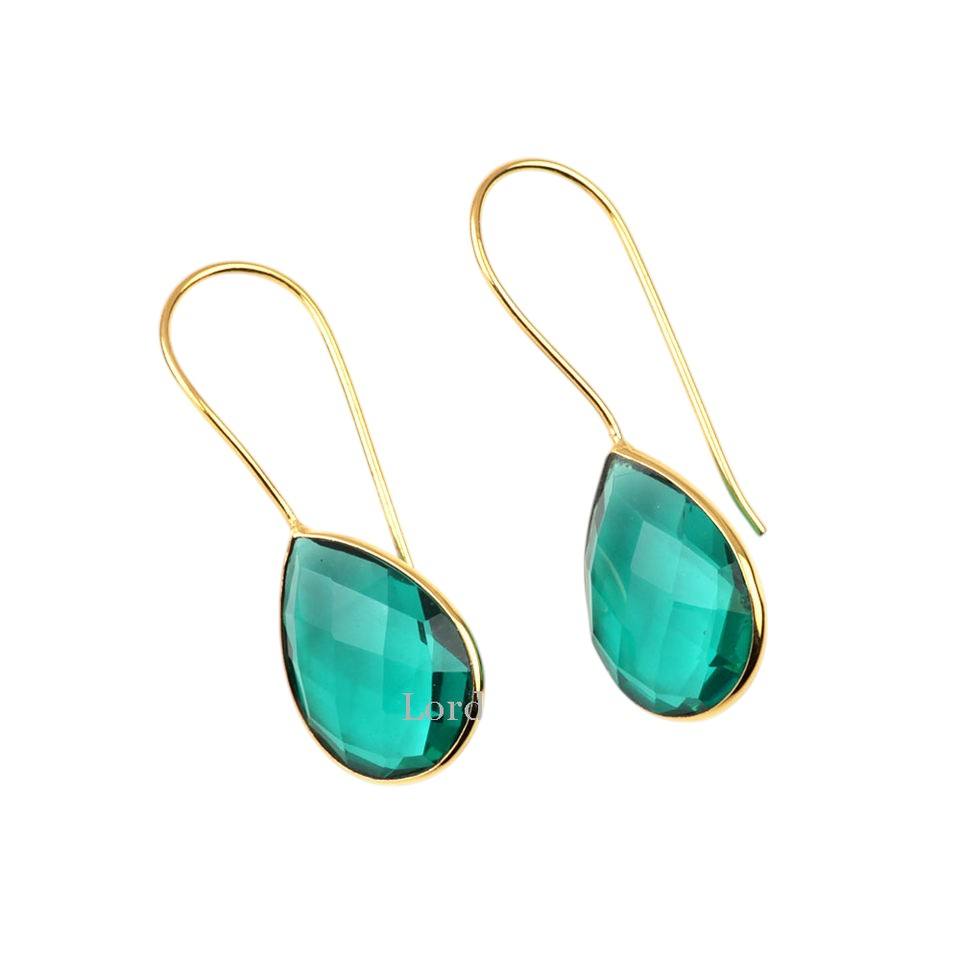 Latest Design Trendy Dainty Teardrop Dangle Earrings Green Teal Hydro Quartz 18k Gold Plating Waterproof Sterling Silver Wedding