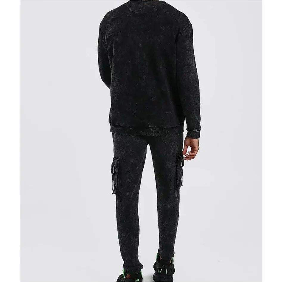 Latest Design Two Pieces Acid Wash Tracksuit Men 100% Cotton Fleece Distressed Unisex Sun Faded Oversize Hoodie