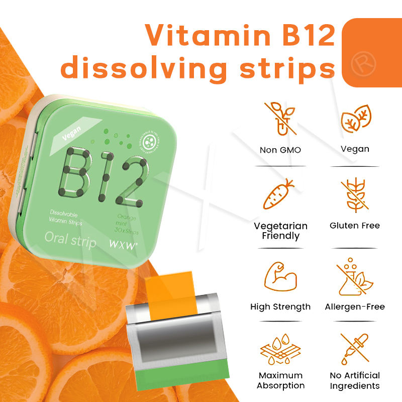 Latest Design Vegan Vitamin B12 Supplement Fast Dissolving Oral Film Strips Supports Immunity & Vitamins Pills Dosage Form