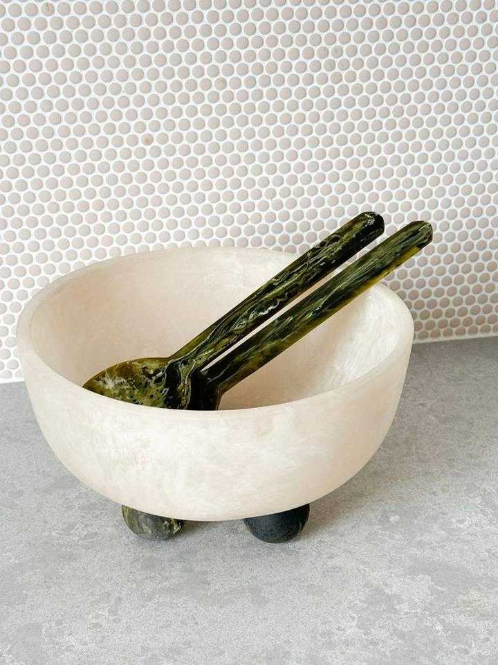 Latest Design White Swirl Resin Salad Bowl & Spoon Fruit Bowl Set Party Tableware Food Grade Eco-Friendly Cute Kitchenware
