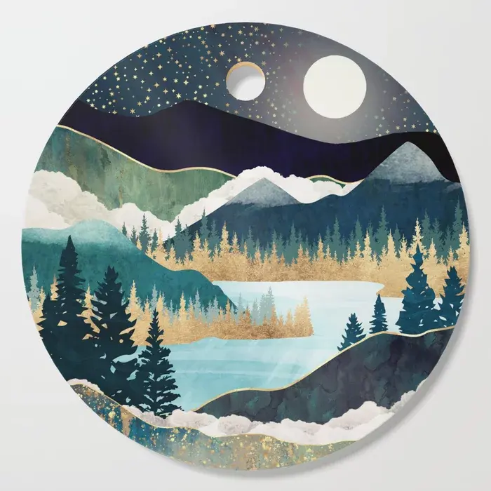 Latest Design Wooden Cheese Boards Colorful Checkered Pattern Mango Wood Chopping Board With Sticker Enamel for Fine Dinning Use