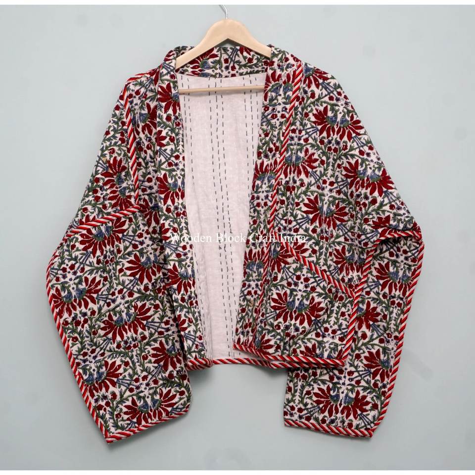 Latest Design kantha Cotton Jacket for Women screen Printed Soft Cotton Layer Short Length Winter Season Knitted jacket