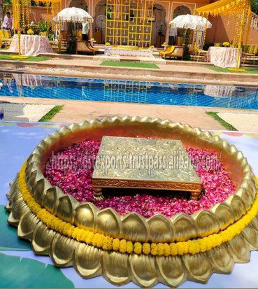 Latest Designed Haldi Tub for Pithi Ceremony Royal Haldi Ceremony Decor With Urli Tub Golden Lotus FRP Urli for Vatna Ritual USA