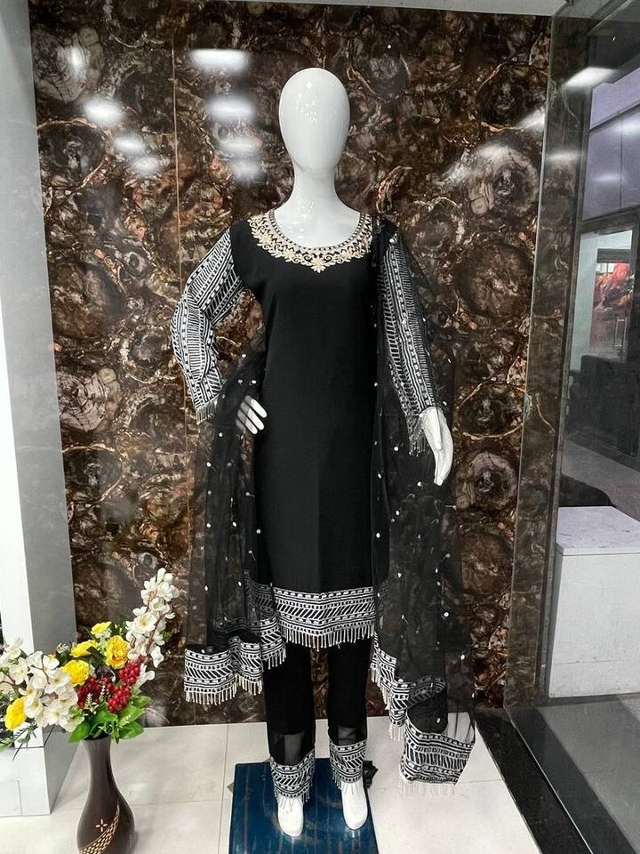 Product Name:Sequence Black Ethnic Style Kurti With Pant And Dupatta Set,