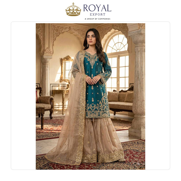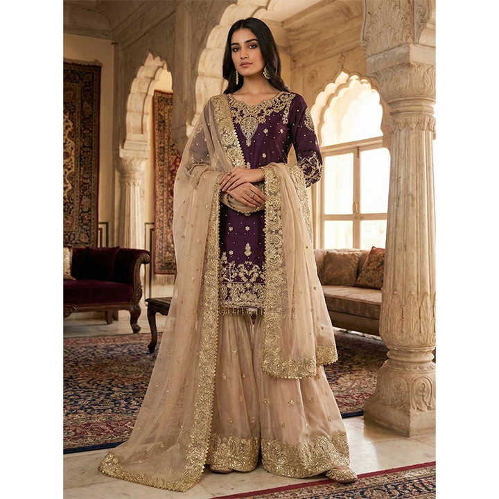 Latest Designer Collection of Wedding Wear Indian Clothing Silk with Coding Dori Sequence Work and Diamond Work Sharara Suit