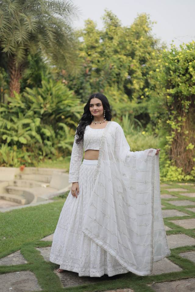 Latest Designer Faux Georgette Lehenga Choli by Fab Zone Heavy Sequins and Thread Embroidered Work Indian & Pakistani Clothing