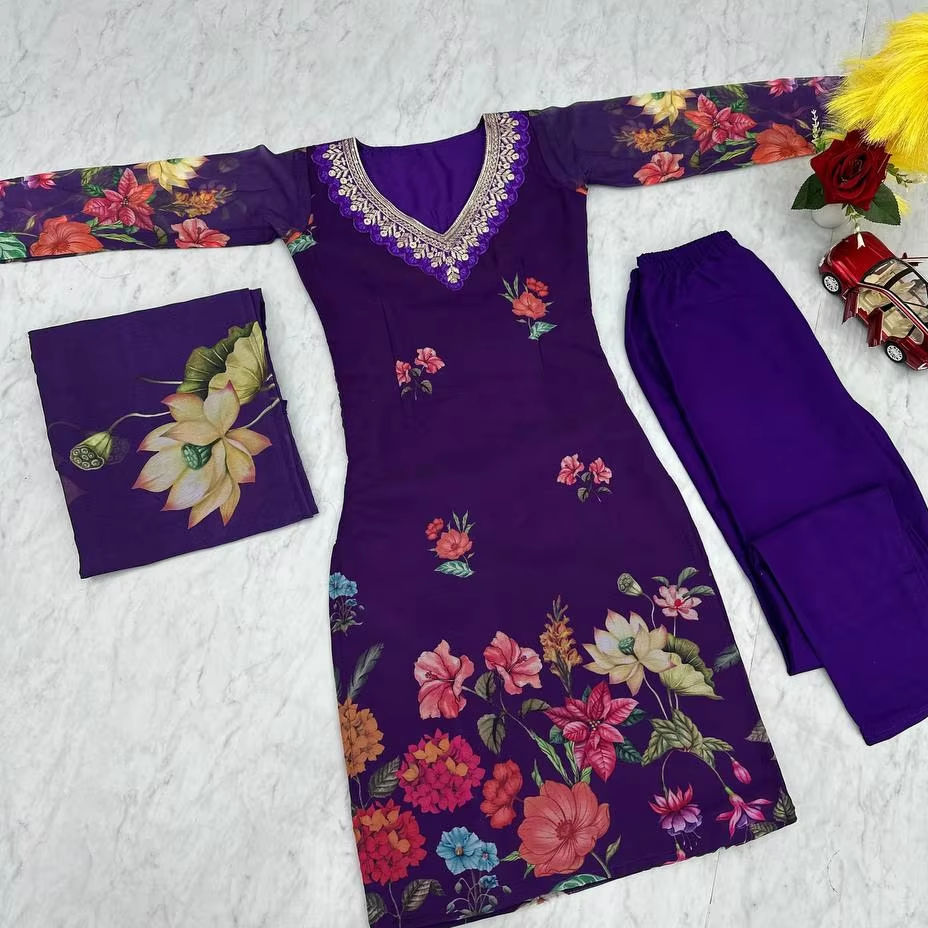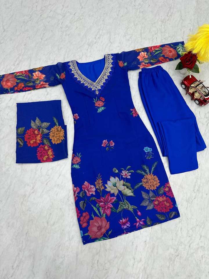 Latest Designer Faux Georgette Thread Work Kurti Set by FabZone