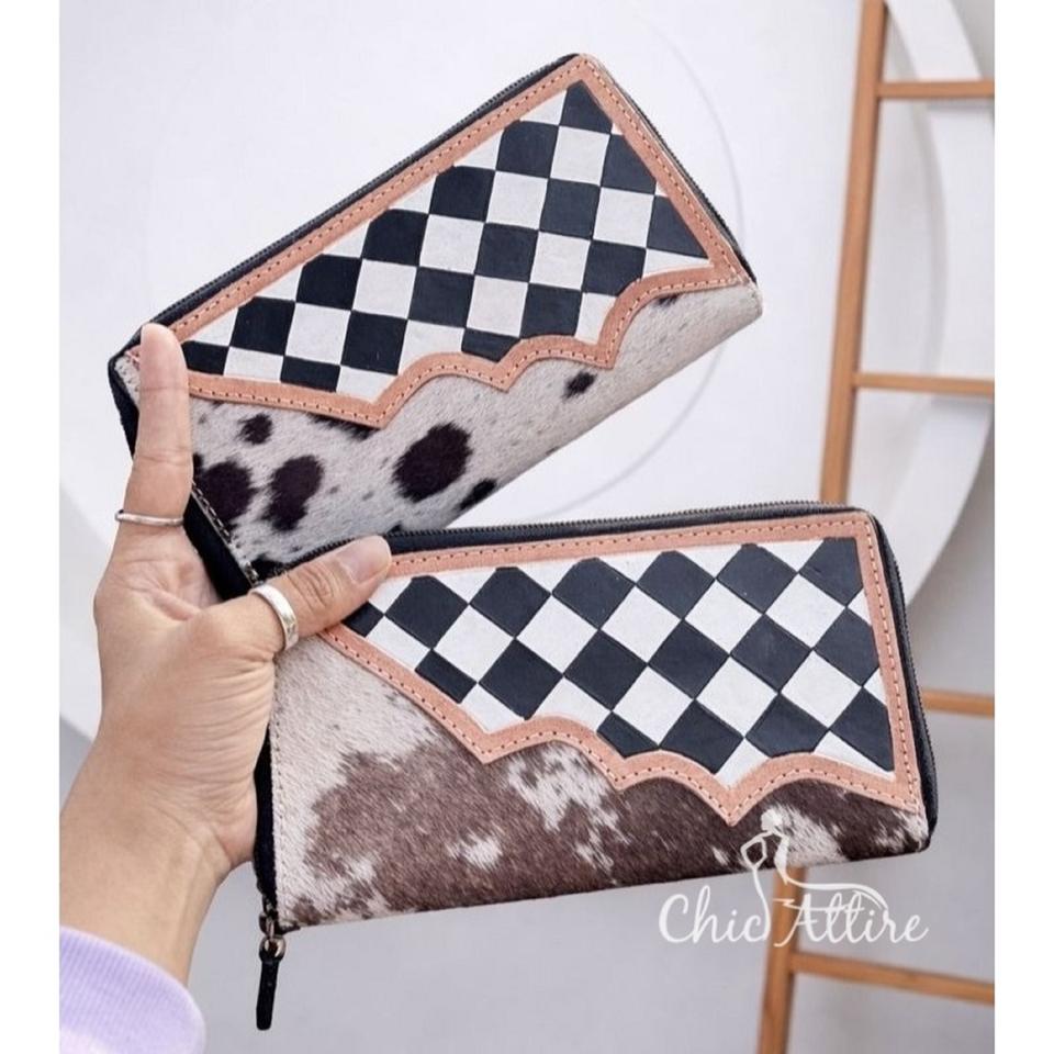 Product name:Hand Tooled Cowhide Checkered Leather Clutch