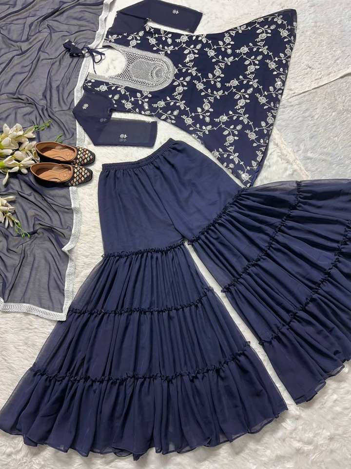 Latest Designer Heavy Faux Georgette Embroidery Sequence Work Sharara Suit Indian & Pakistani Clothing by FabZone