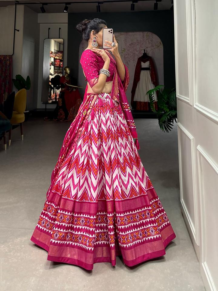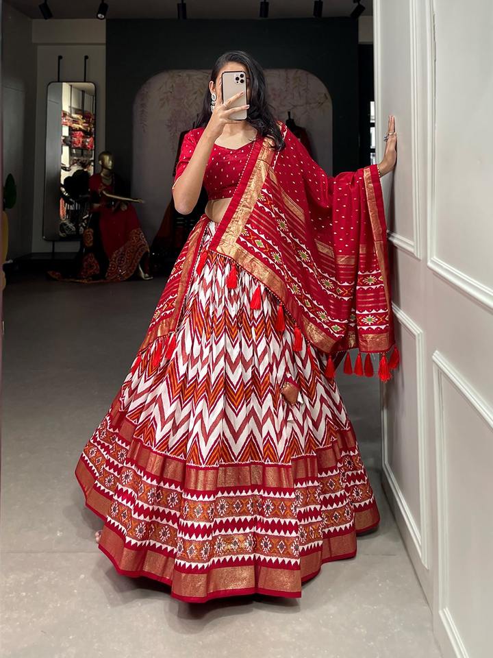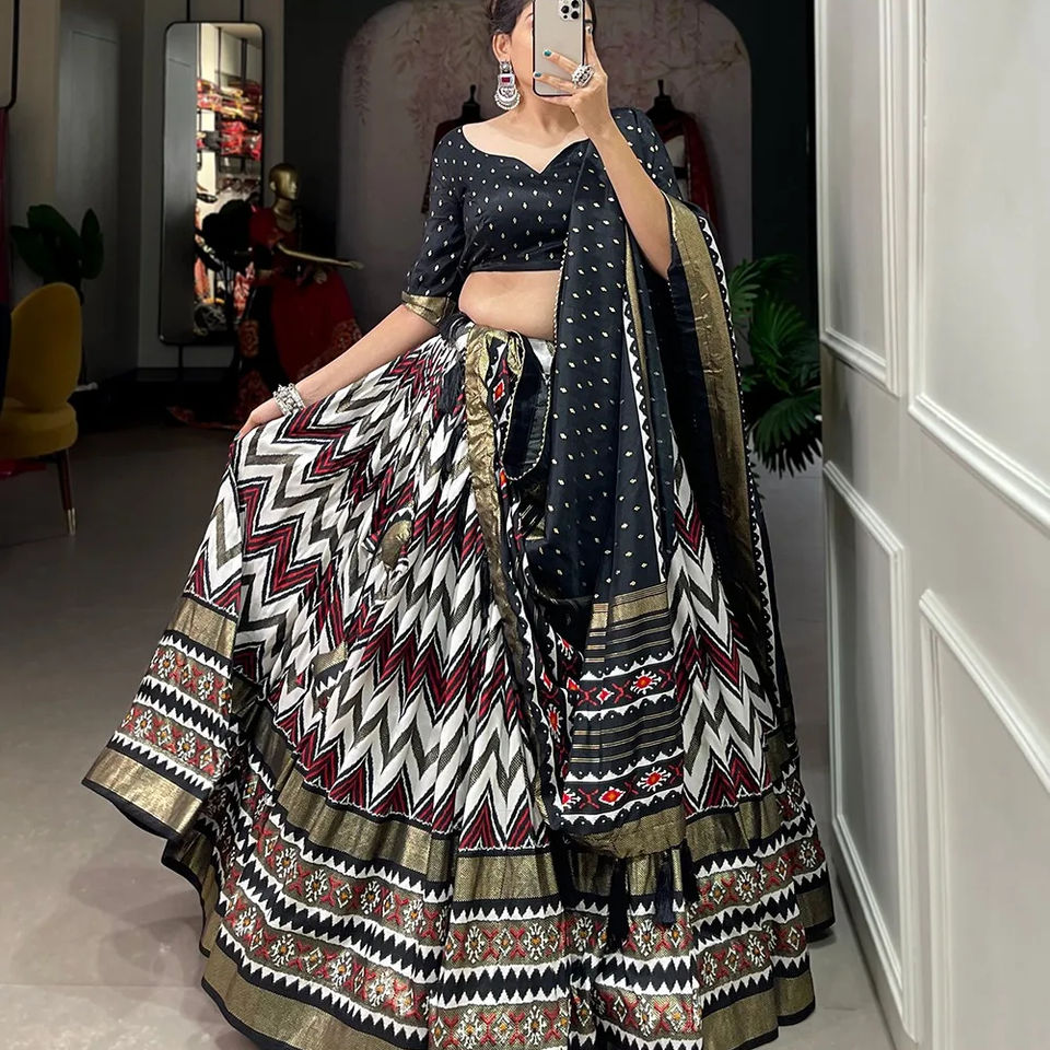 Latest Designer Pure Tussar Silk Cotton Printed Work Lehenga Choli by Fab Zone