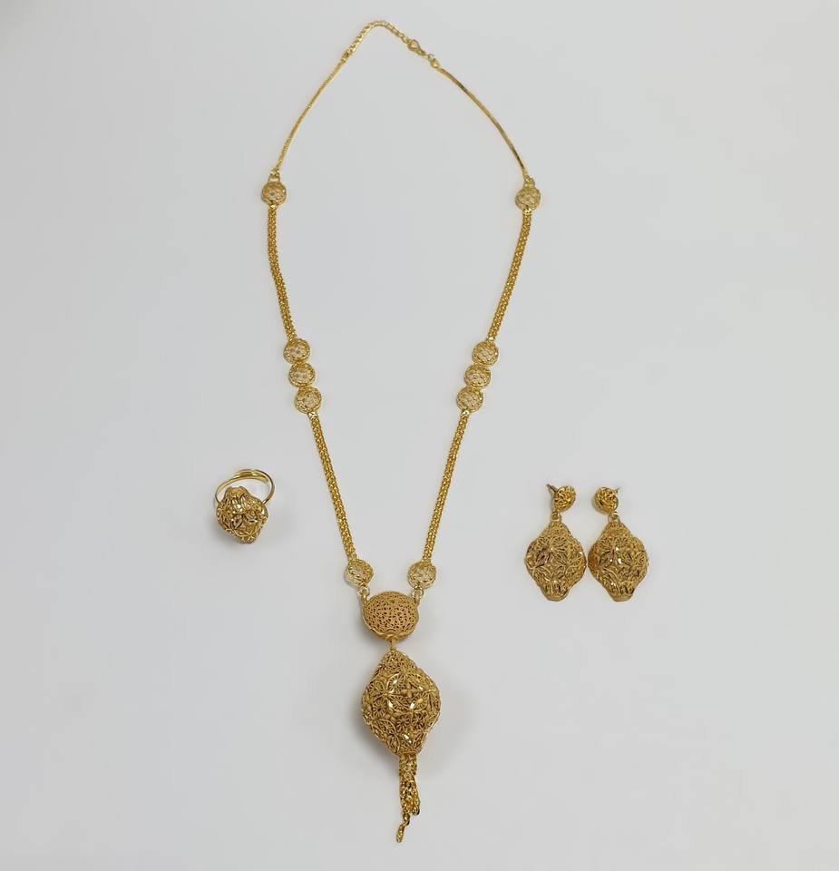 Best Price Dubai Gold Plated Jewelry Set 24KT Four Gram Charming Collection Earring Ring Latest Designs for Weddings