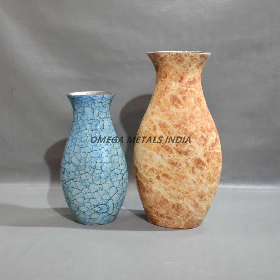 Latest Designs Tall Crackle Pattern Metal Vases in Dual Colors with Elegant Shape Ideal for Home Office and Event Decor