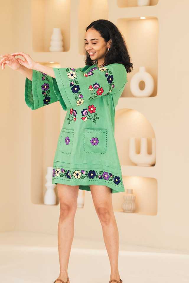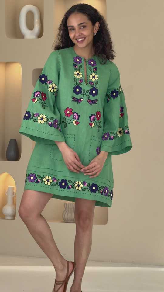Latest Dress for Women Casual Long Sleeved A-line Long Dress set Ukraine Embroidered Flower Round Neck Feather Best Price