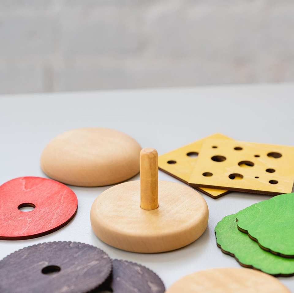 Latest Eco-Friendly Montessori Wooden Stacker Toys Toddlers Baby Burger Stacker Toy Free Sample Montessori Stacking Game