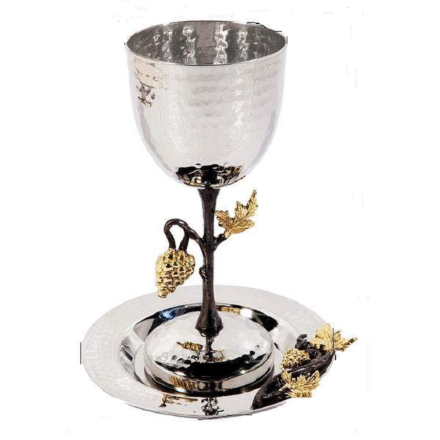 Latest Elegant Design Stainless Steel 304 High Quality Metal Gold Metal Leaf Hammered Wine Cup Glass with Tray