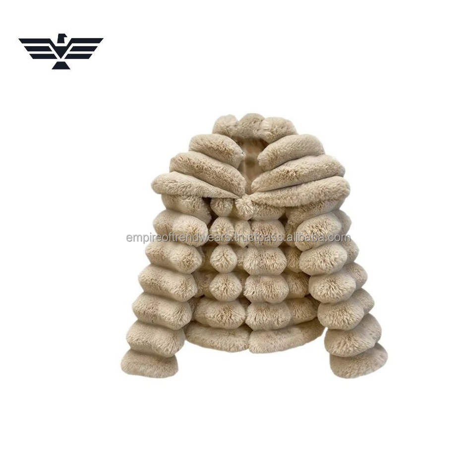 Latest Elegant Luxury Women's Long Pink Plush Puffer Jacket Waterproof Soft Faux Fur Winter Coat with Cotton Filling and Button