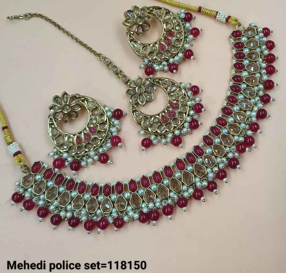 Latest Exclusive Designer Fashion Heavy Oval Flower Design Kundan And Pearl Studded Jewellery And Earring Collection For Women