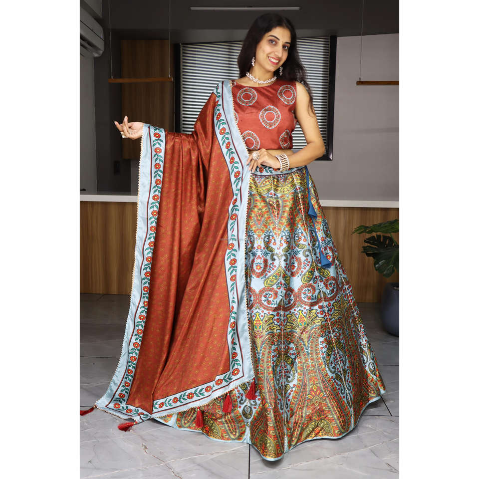Latest Exclusive Floral Geometric Combination Printed Lehenga Vibrant Showcase Be Indian & Pakistani Clothing Shop Our Creation