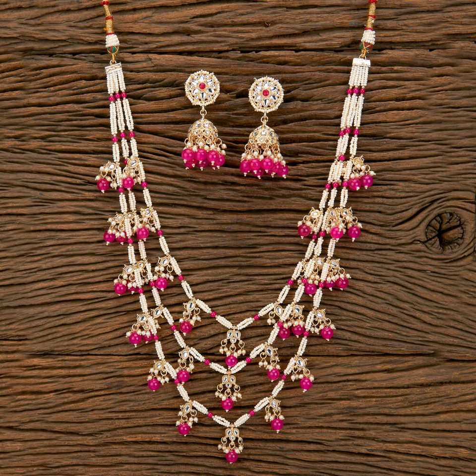 Latest Export Quality of Indo Western Long Style Beads Necklace Set With Gold Plating in Wholesale Rates