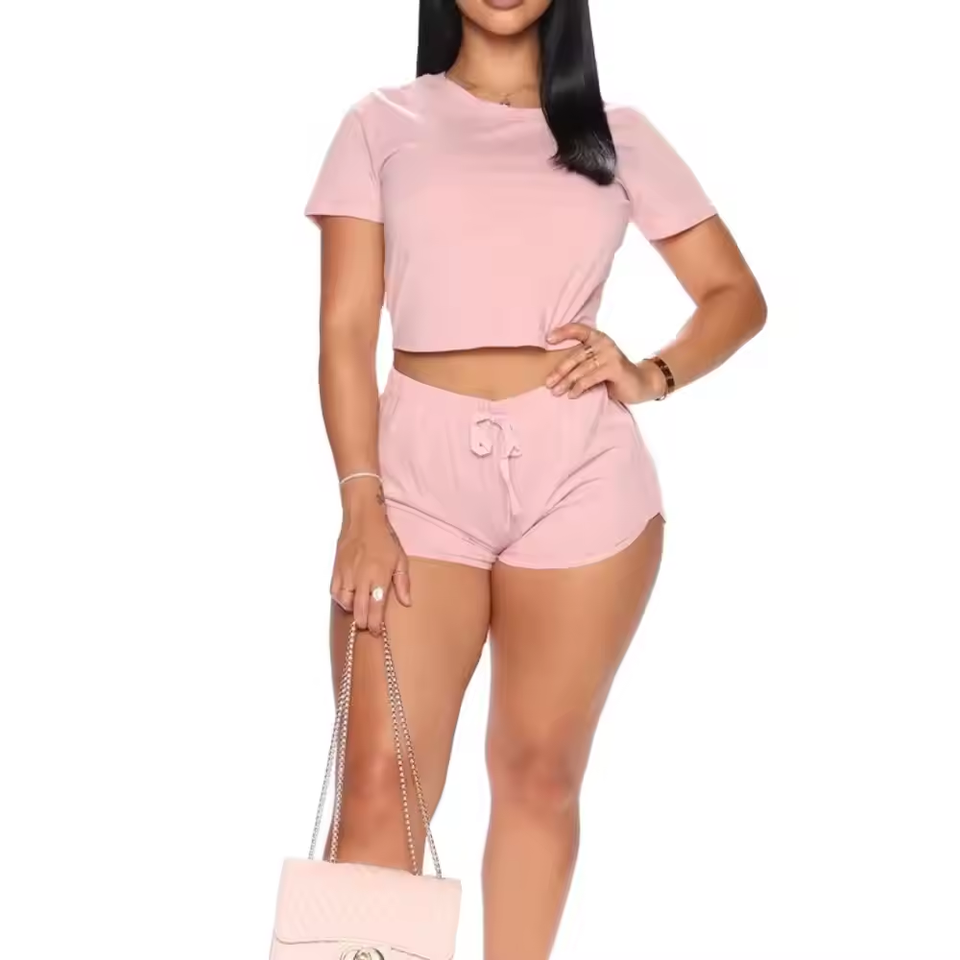 Latest Fashion Design Casual Wear Women's T Shirt and Shorts Casual Women Summer Tracksuits Wholesale Clothing Sets/ Twin Sets