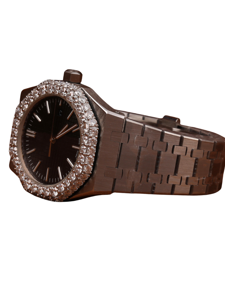 Latest Fashion Men's Luxury Mechanical Quartz Watch with White Gold Finish VVS Moissanite Diamond Smart Black Dial Case