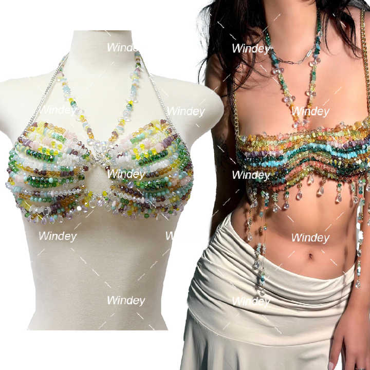 Latest Fashion Strap Multilayer Sexy Bodycon Chain Diamante Back Beaded Top Glass Crystal Stone Vest Bras