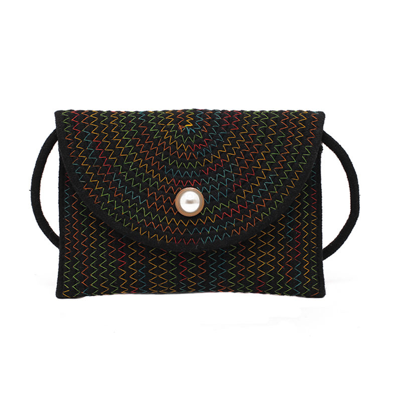 Latest Fashion Trendy Women's Designer Mini Handbag Stylish Summer Straw Bag with Flap Closure Stripe Decoration Phone Purse