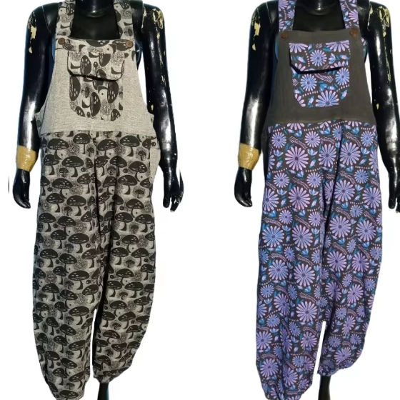 Latest Fashion Woman Free Size Jumpsuit Tie Dye One Piece Jumpsuit Boho Loose Woman Beach Dress for Women hippie patchwork style