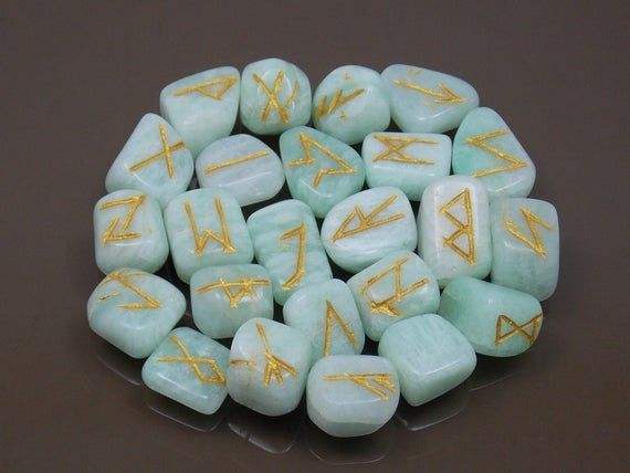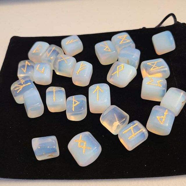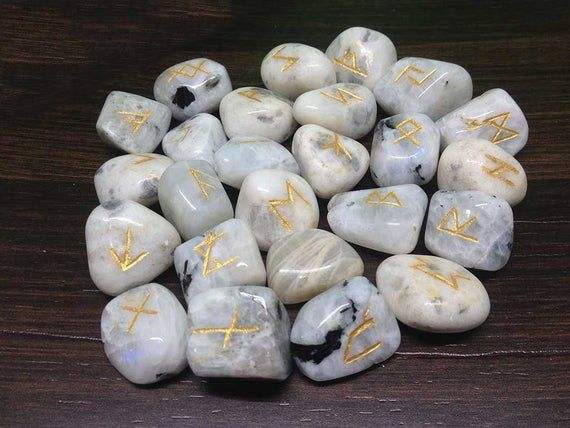 Latest Feng Shui Style Rainbow Moonstone Rune Set Carved Tumbled Natural Crystals Agate Wholesale Gemstone Sets on Sale
