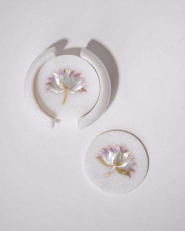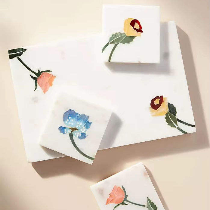 Latest Floral Inlay Marble Coasters Handcrafted Drink Coasters Set Decorative Tableware Supplier