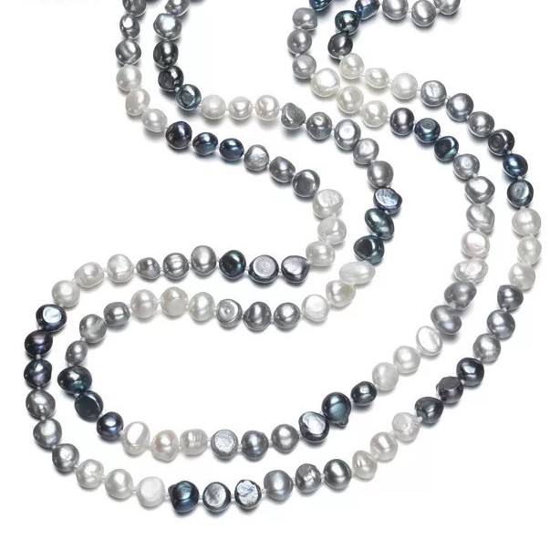 Latest Freshwater Cultured Genuine Baroque White & Black 8mm Pearl Beaded 100% Natural Loose Pearls Necklace Jewelry for Women's