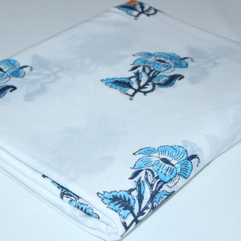 Latest Hand Block Floral Printed Voile Fabric 100% Pure Cotton Soft Material for Garments & Clothing