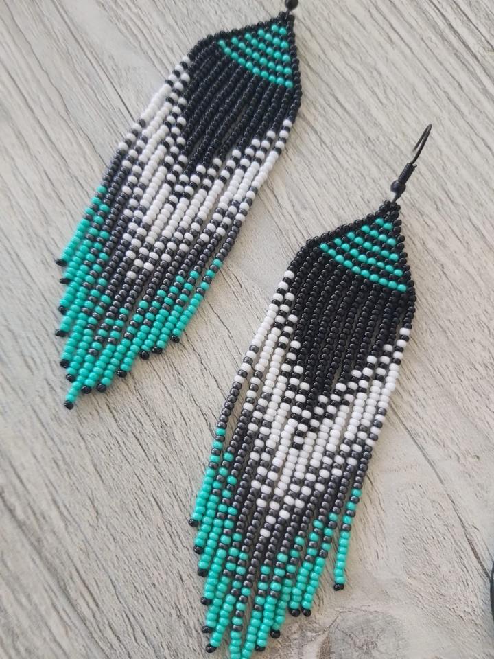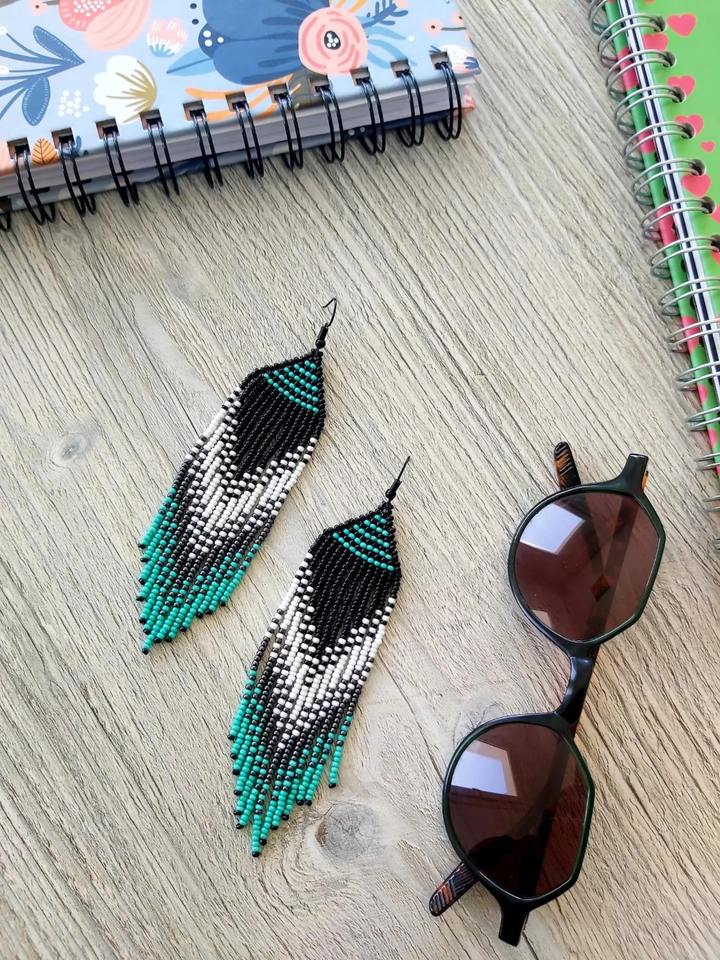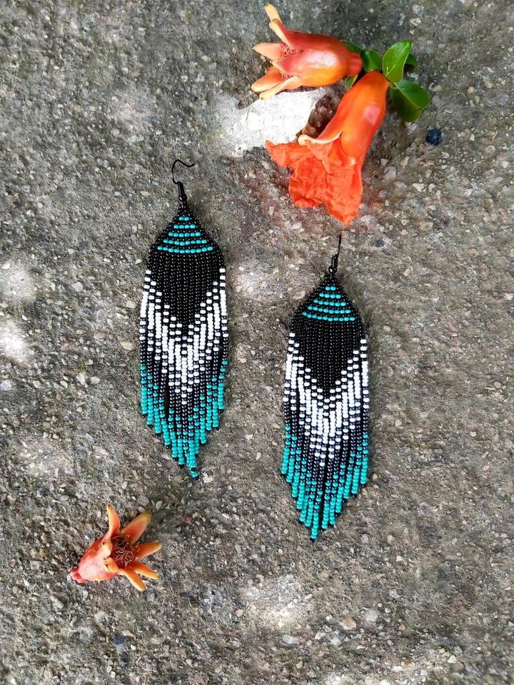 Latest Handmade Classic Turquoise Beaded Charm Earrings Long Drop Dangle for Parties and Daily Wear at Low Cost