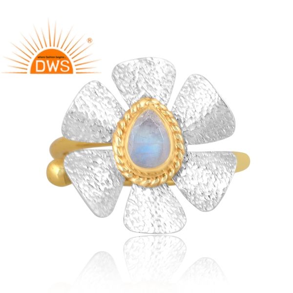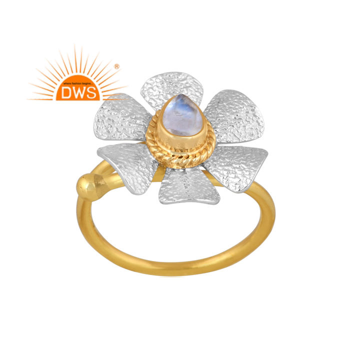 Latest Handmade Design 18K Gold Plated Natural Rainbow Moon Stone Gemstone Floral Stackable Ring Demi Fine Jewelry Manufacturer
