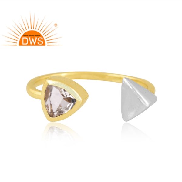 Latest Handmade Design 18K Gold Plated Natural Crystal Quartz Gemstone Adjustable Ring Demi Fine Jewelry Manufacturer