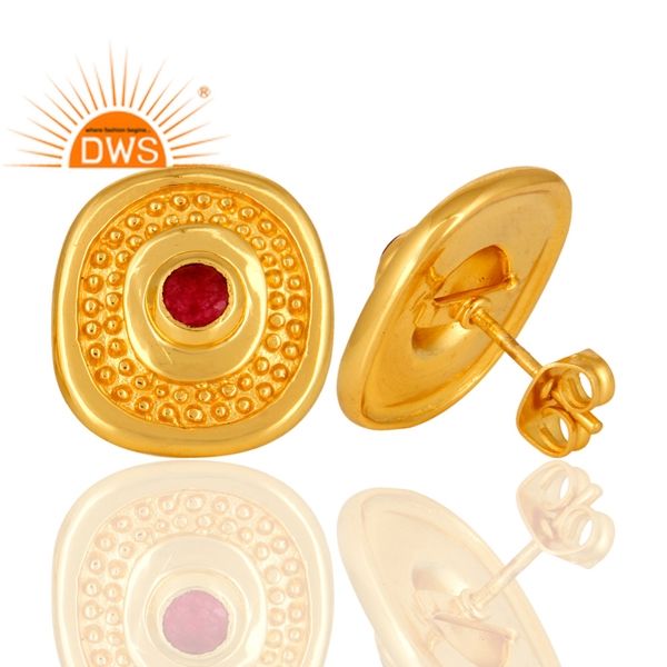Latest Handmade Design 18K Gold Plated Natural Red Aventurine Quartz Gemstone Stud Earring Demi Fine Jewelry Manufacturer