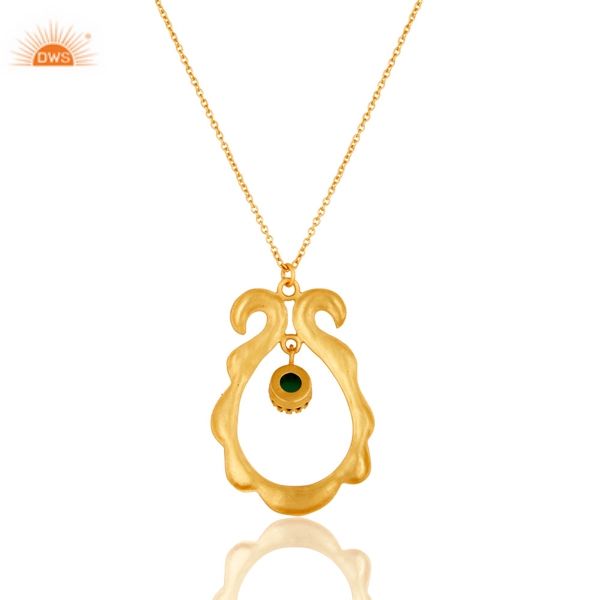 Latest Handmade Design 18k Gold Plated Natural Green Onyx Gemstone Brass Pendant Necklace Demi Fine Jewelry Manufacturer