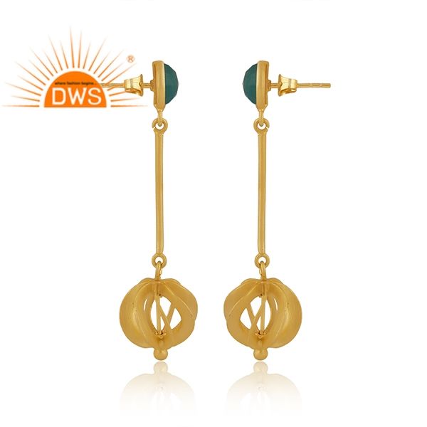 Latest Handmade Design Natural Green Onyx Gemstone Dangle Earring Fashion Jewelry For Women Gift For Her