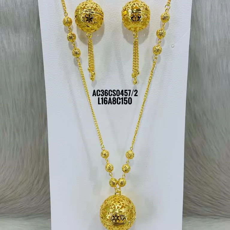 Latest High Quality Arabic Jewellery Antique Long Necklace Set Gold Plated for Women