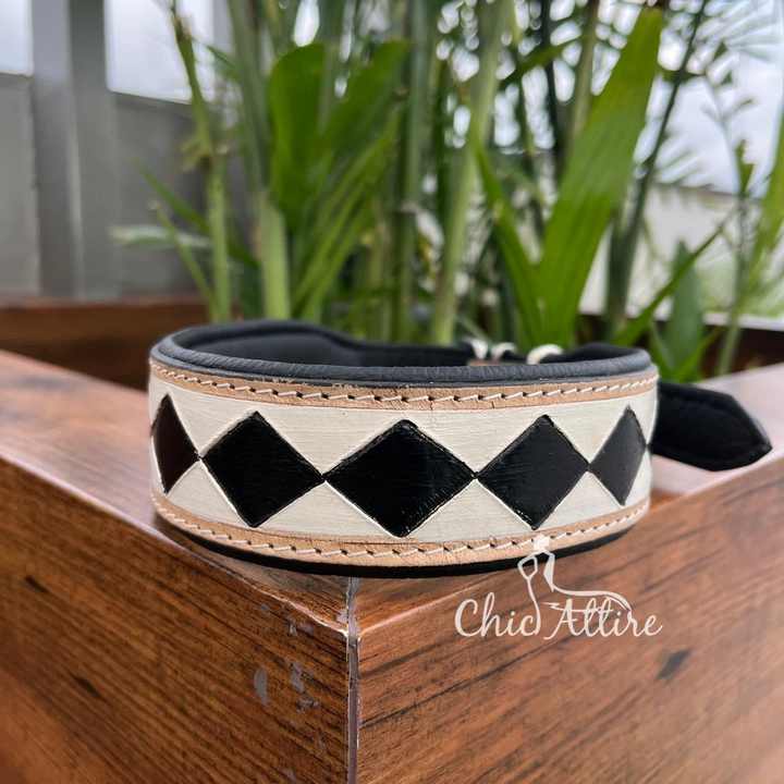 Product name:Checkered genuine leather dog collar