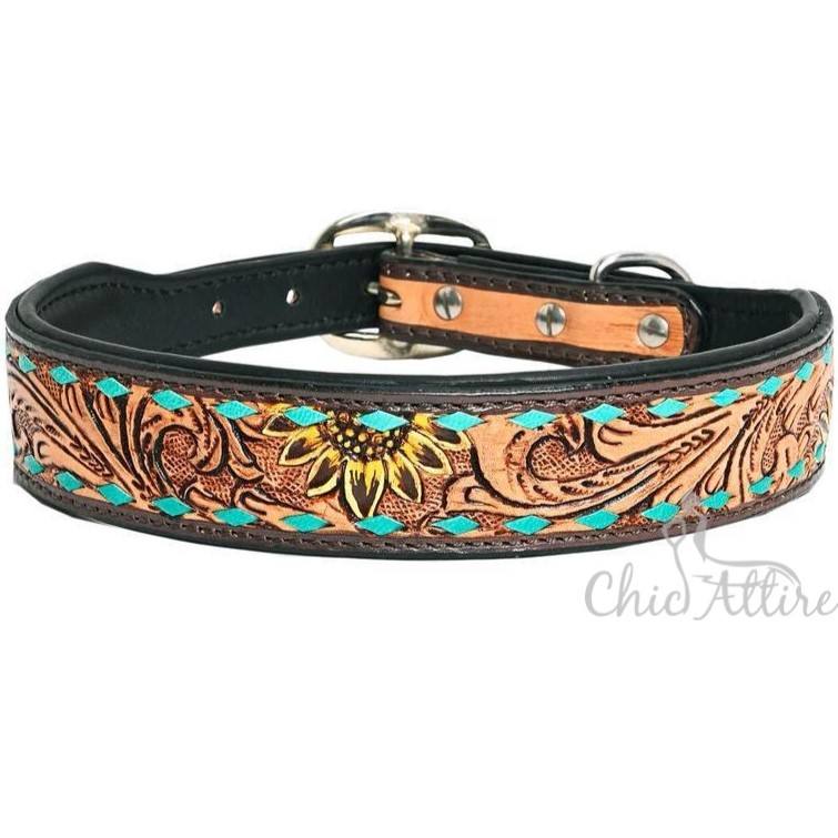 Latest Hot Selling Floral Hand Tooled Leather Dog Collar for Pets Real Genuine Leather Padded Adjustable Accessory for Neck Belt