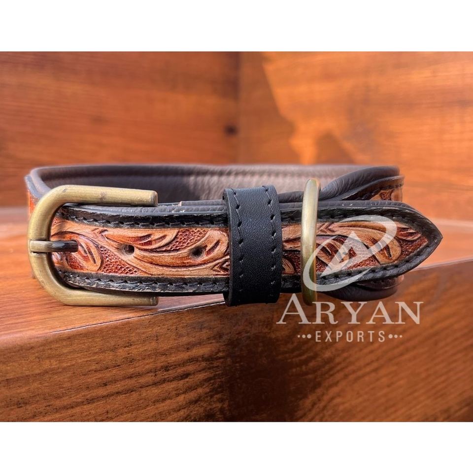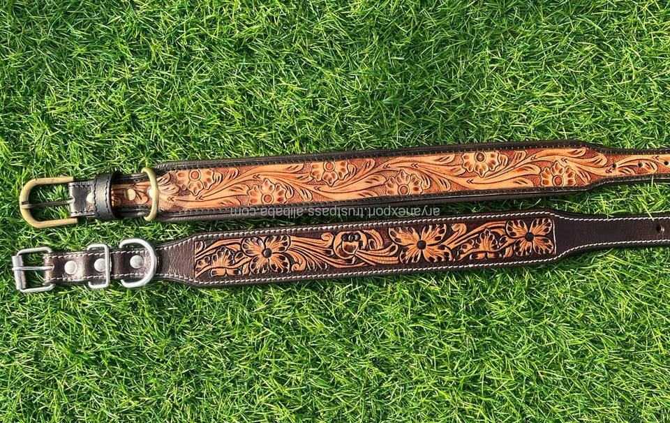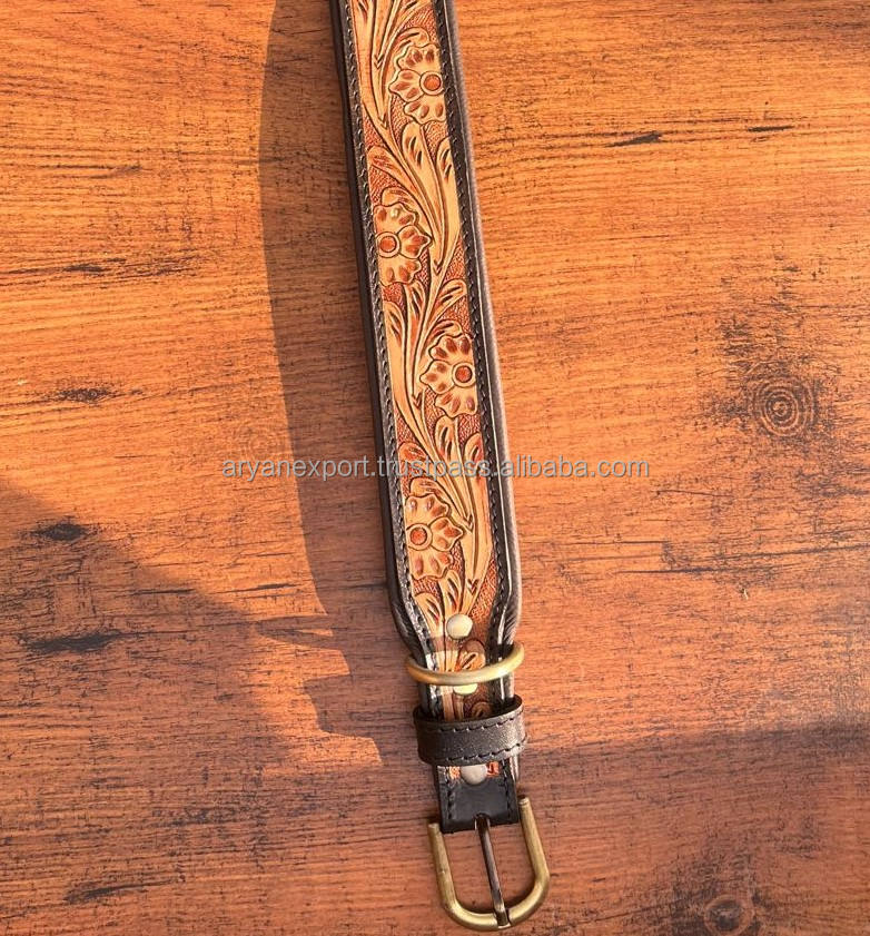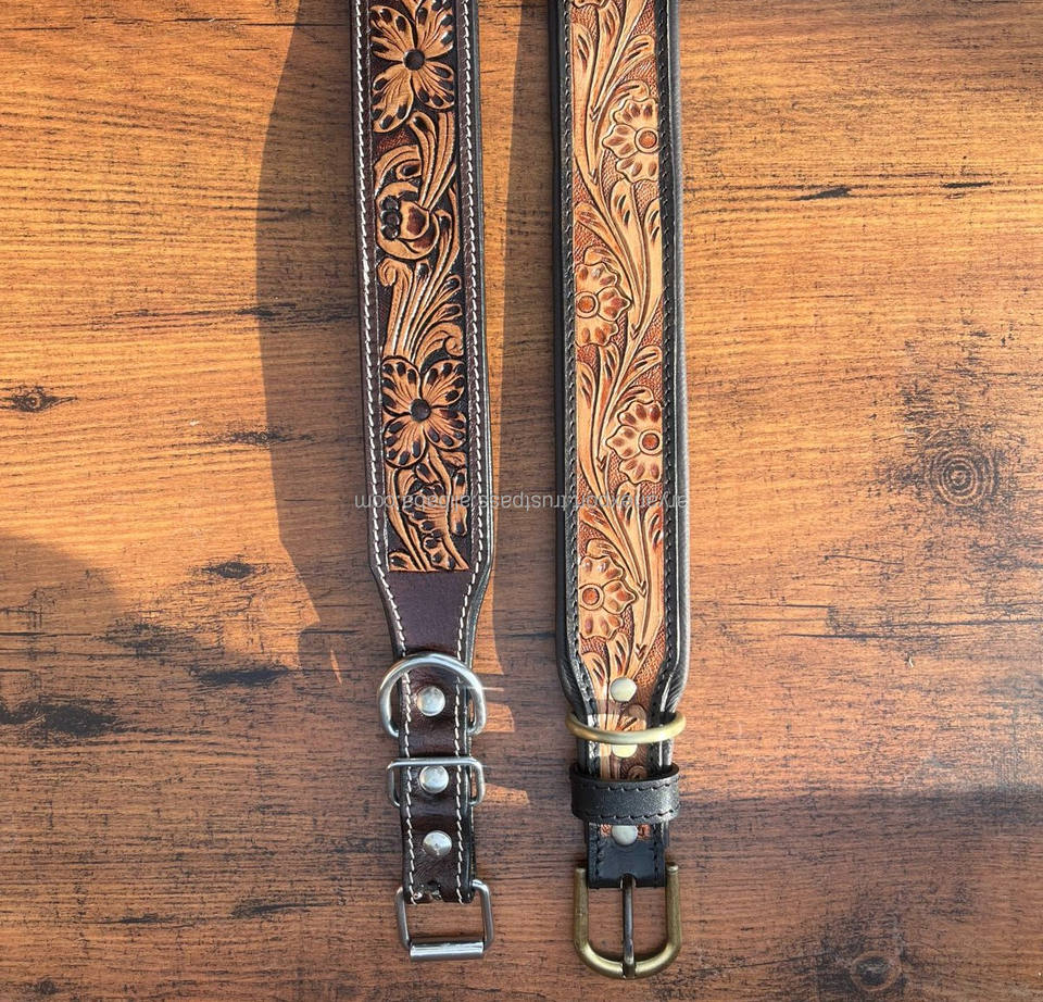 Latest Hot Selling Floral Hand Tooled Leather Dog Collar for Pets Real Genuine Leather Padded Adjustable Accessory for Neck Belt
