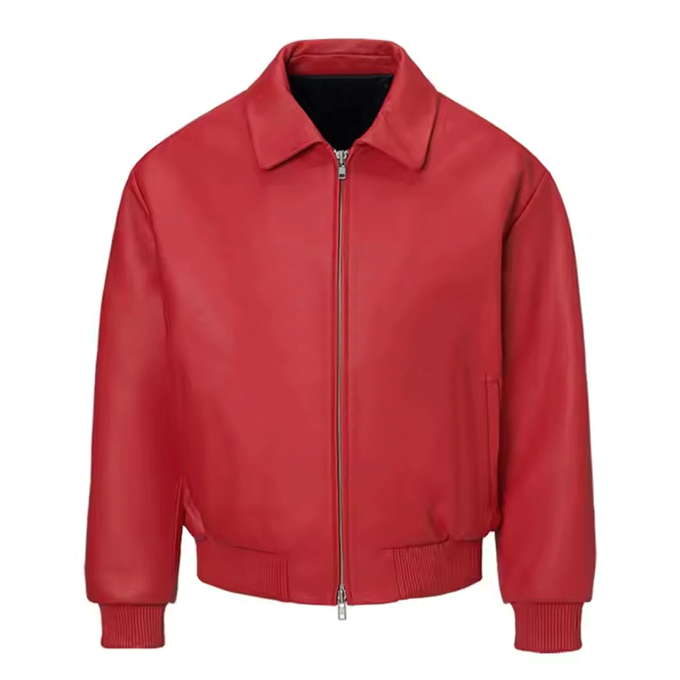 Latest Hot Selling Premium Quality Custom Design Red Real Leather Jacket Streetwear Square Collar Leather Outdoor Jacket Men's
