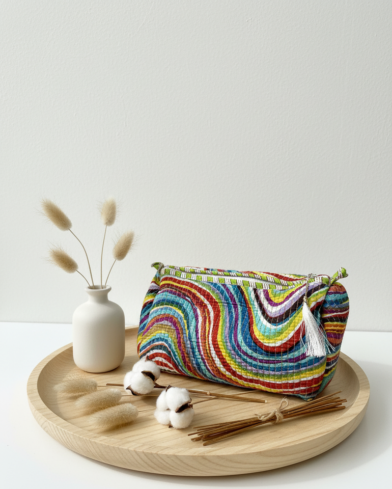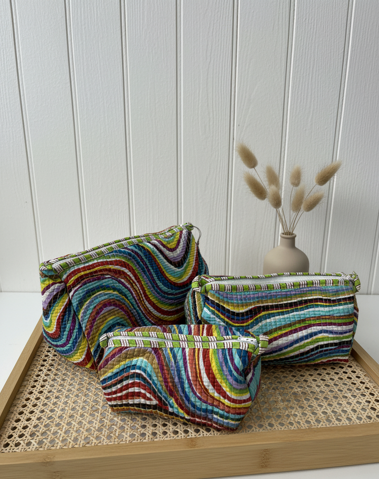 Latest Indian Cotton Print Quilted Toiletry Bags Wash Bag Shaving Kit Vanity Case Travel Makeup Pouches Waterproof Zippers 3pack