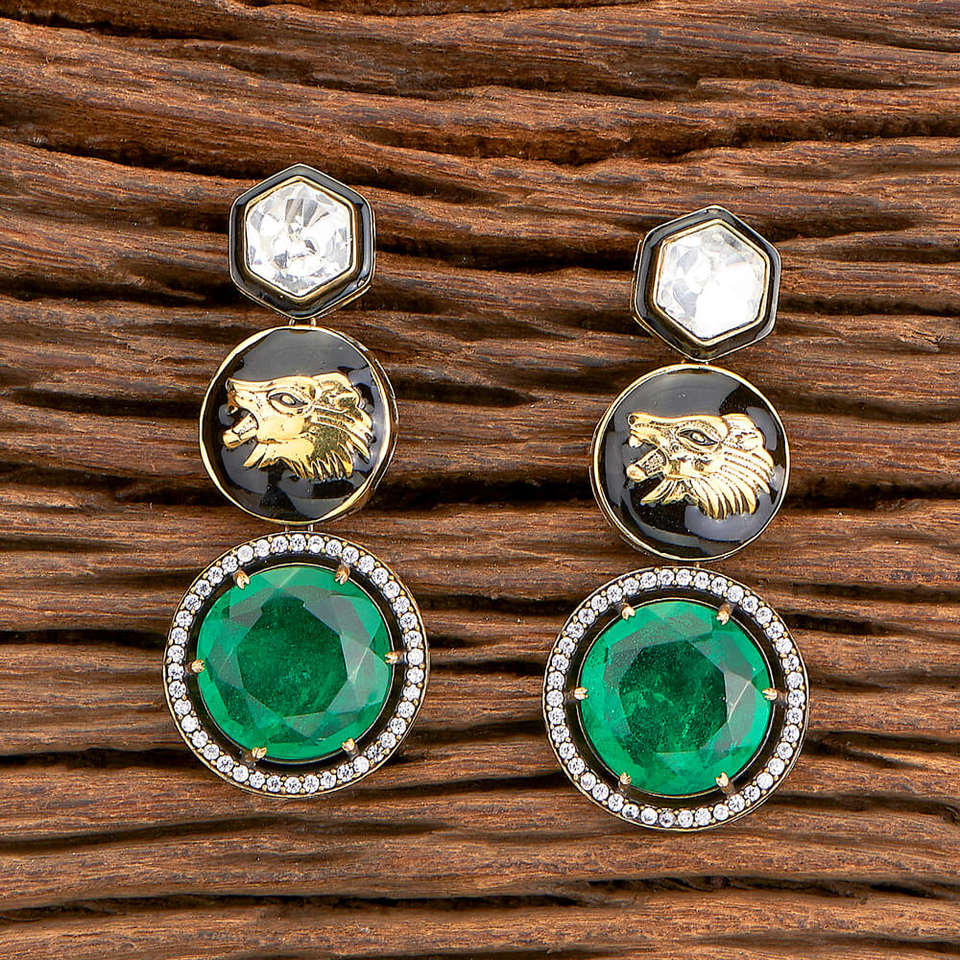 Latest Kundan Dangle Earring With Mehndi Plating Polki Jewellery Lion Style for Trendy Look