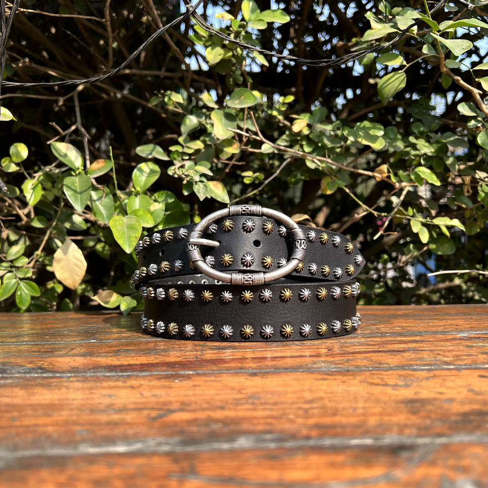 Latest Water Buffalo Leather Western Studded Belt Nickel Finish Solid Brass Buckle Floral Pattern 35mm Width Durable Belt