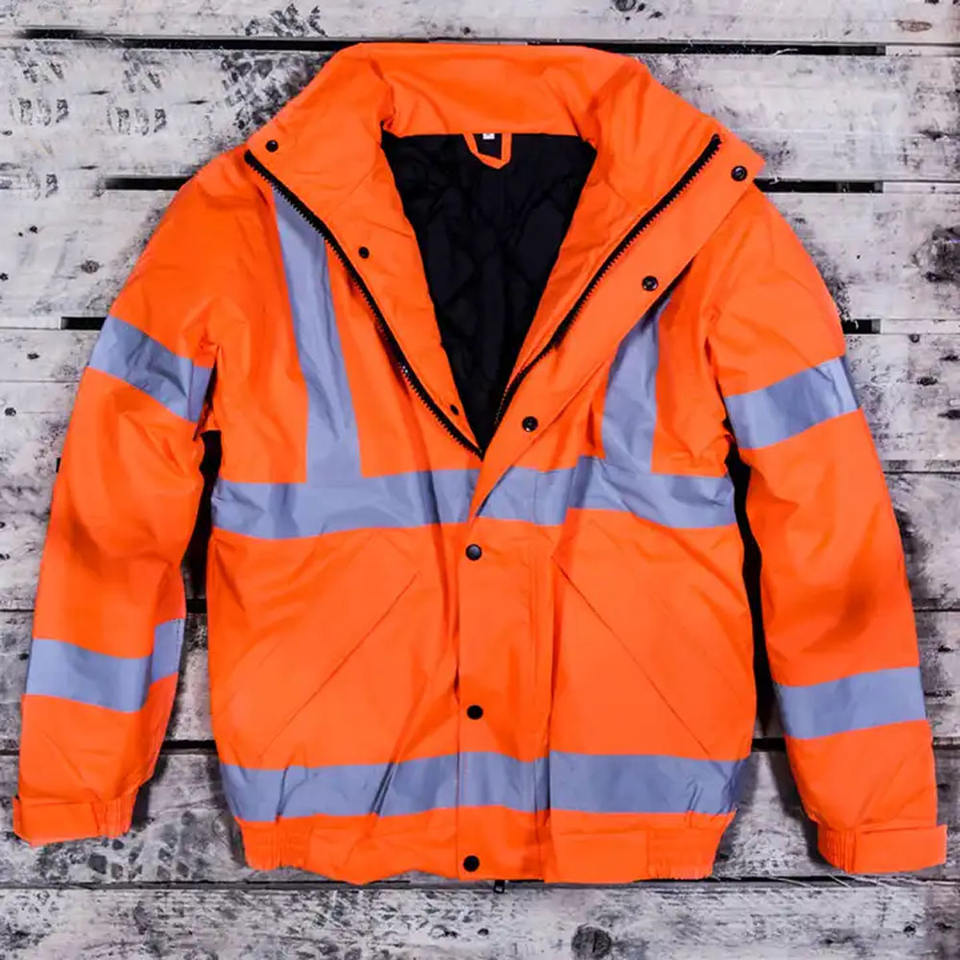 Latest Lightweight Men Orange Hi Vis Reflective Parka Jacket With Detachable Hood & Multiple Pockets for Sale in L:ow MOQ